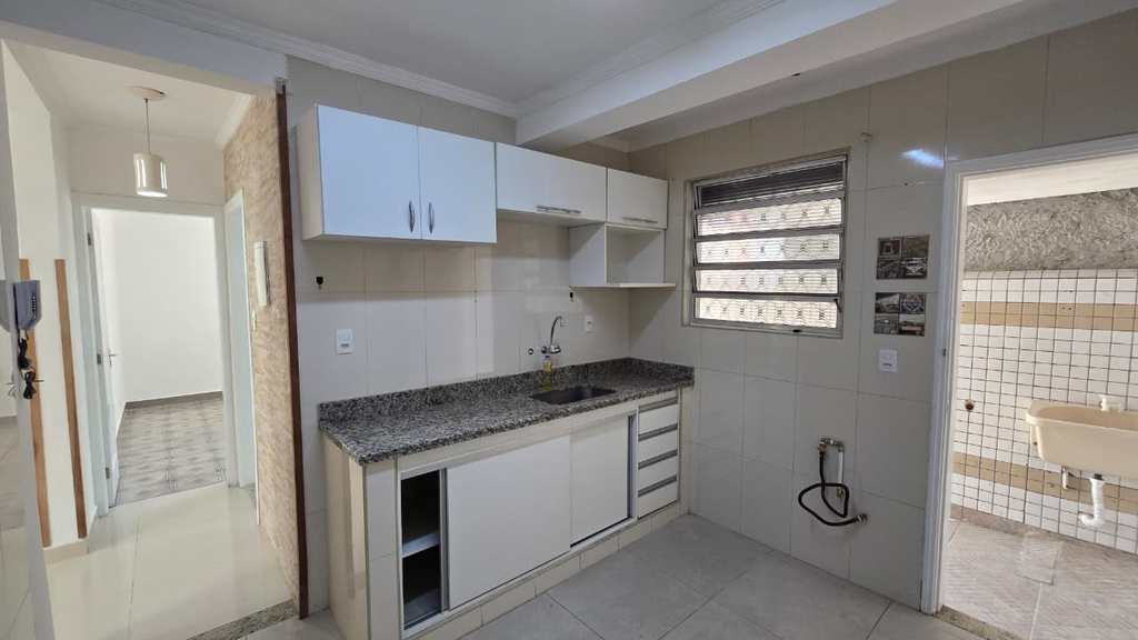 Imóvel com sala para 2 ambientes, 2 dormitórios, wc social, cozinha, área de serviço e uma vaga de garagem.
